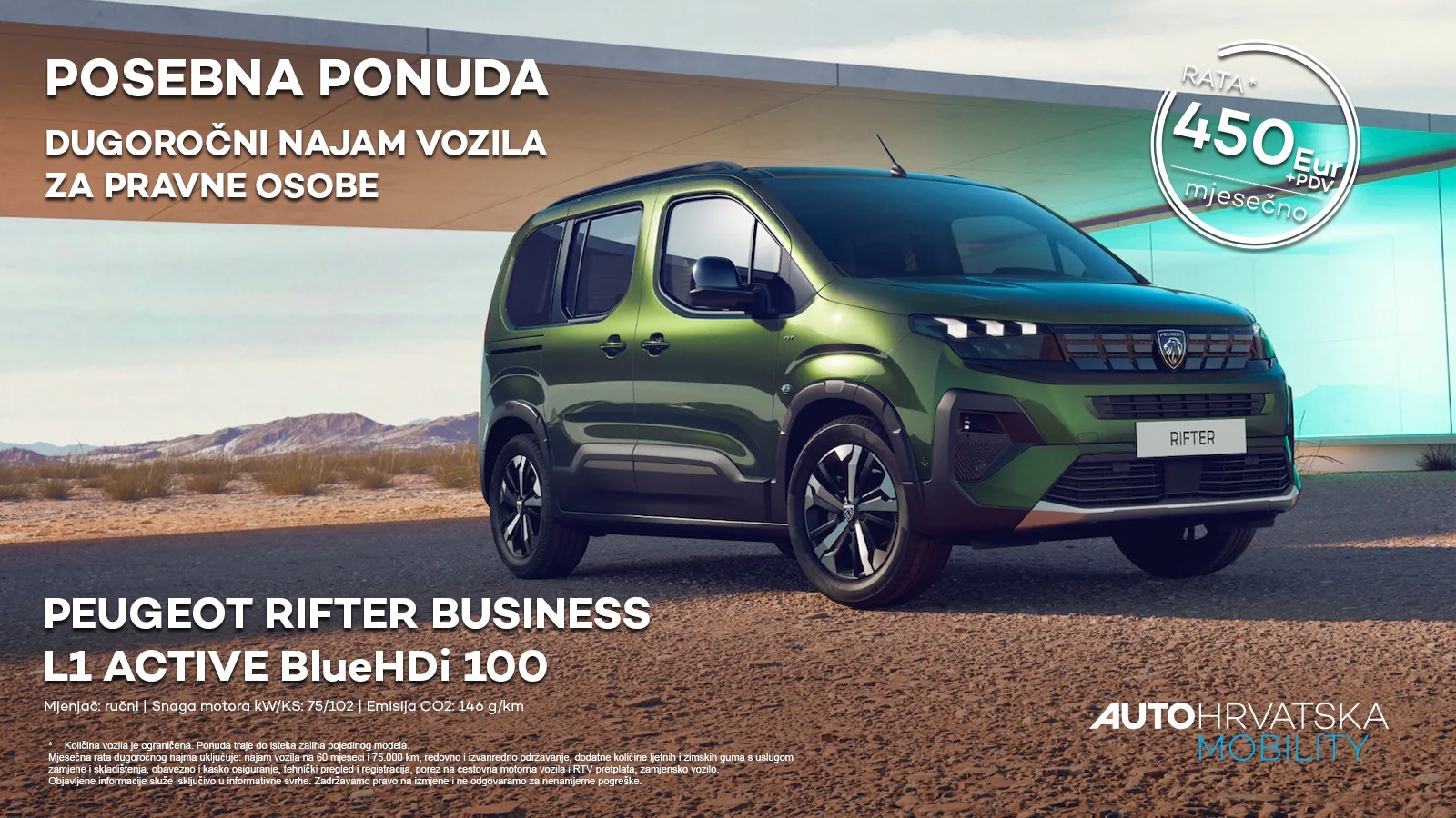 ▶️Peugeot Rifter Business dostupan je za dugoročni najam vozila po mjesečnoj rati od 450 €+pdv.