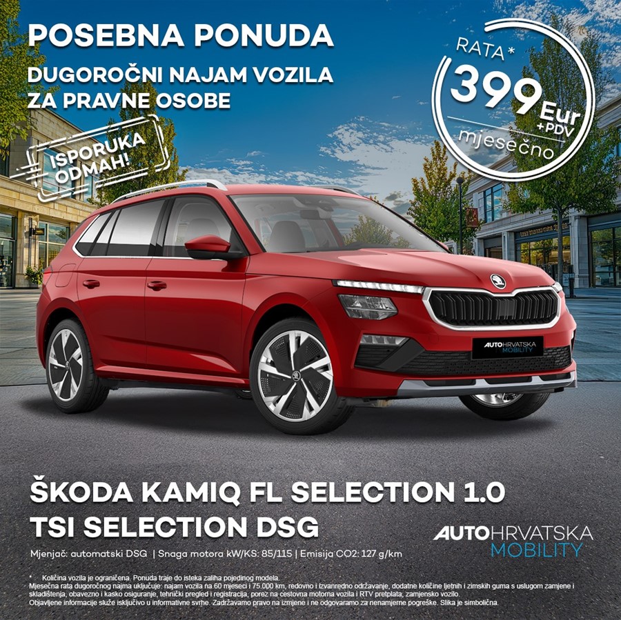 ▶️Škoda Kamiq dostupan je za dugoročni najam vozila po mjesečnoj rati od 399 €+pdv.