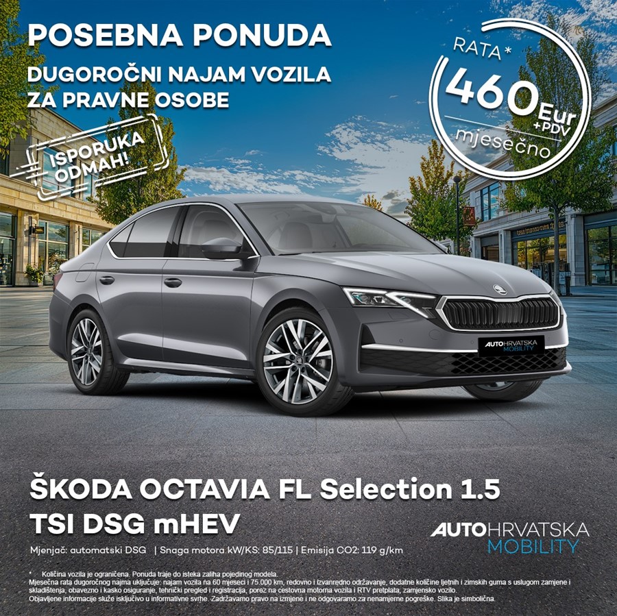▶️Škoda Octavia TSI DSG dostupan je za dugoročni najam vozila po mjesečnoj rati od 460 €+pdv.