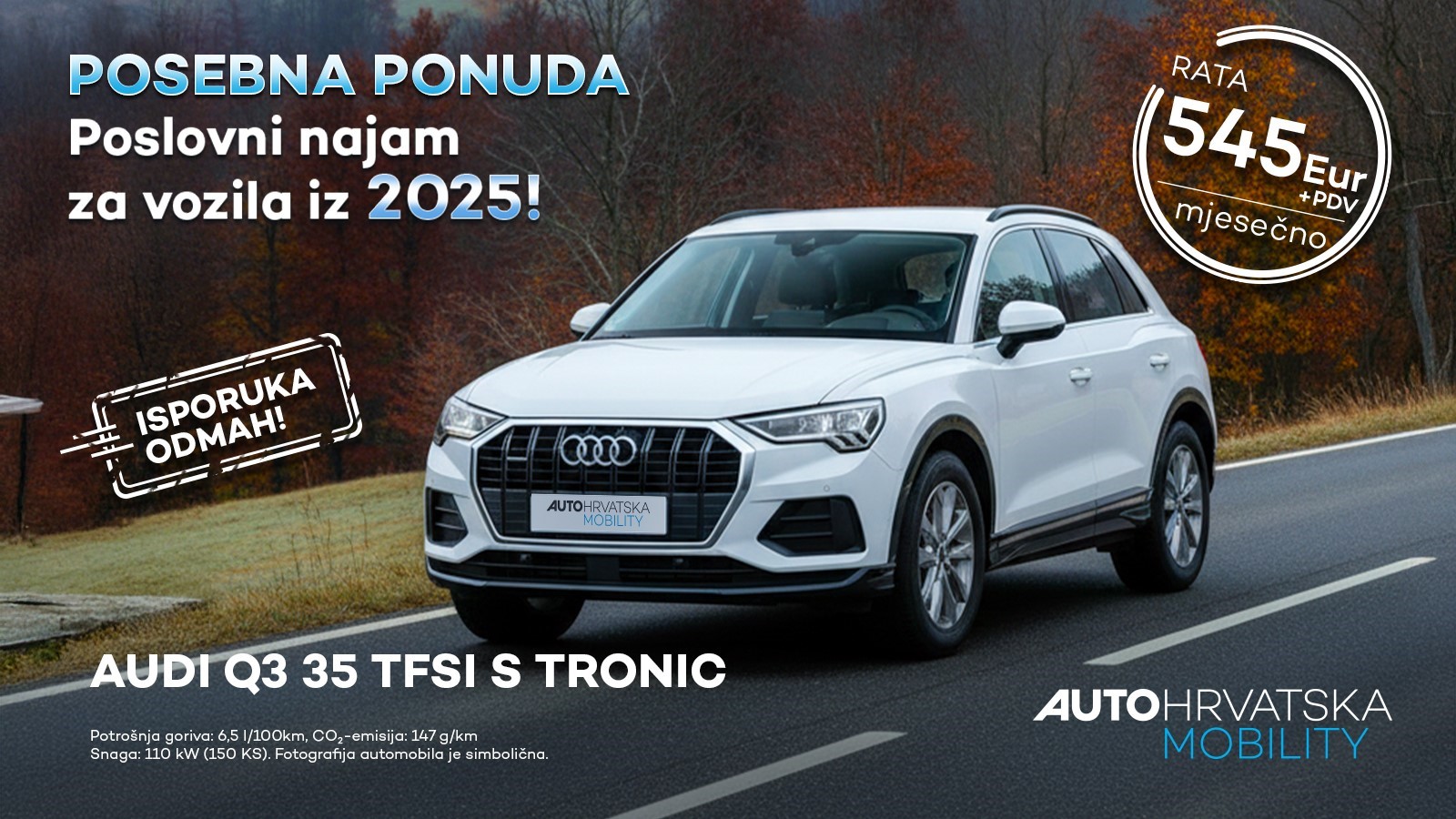 ▶️Audi Q3 dostupan je za dugoročni najam vozila po mjesečnoj rati od 545 €+pdv.
